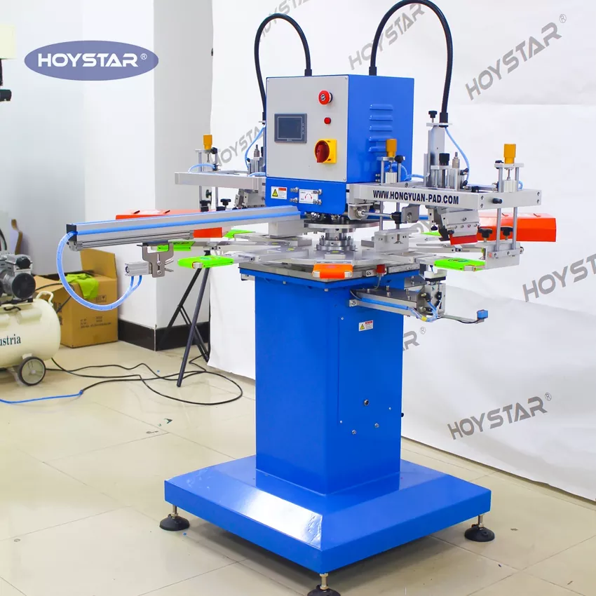HOYSTAR minangka pabrikan lan pemasok sing dipercaya ing China; Iki HOYSTAR 2 Warna Otomatis Bisa Cooler Koozies Screen Printing Machine Cocog kanggo industri pangan lan packaging, khusus kanggo koozies lan bisa coolers, mesin sablon otomatis iki seamlessly ngotomatisasi kabeh proses printing dual-side. Saka loading kanggo printing, pangatusan, rotasi 180 derajat, printing sisih liya, lan unloading pungkasan