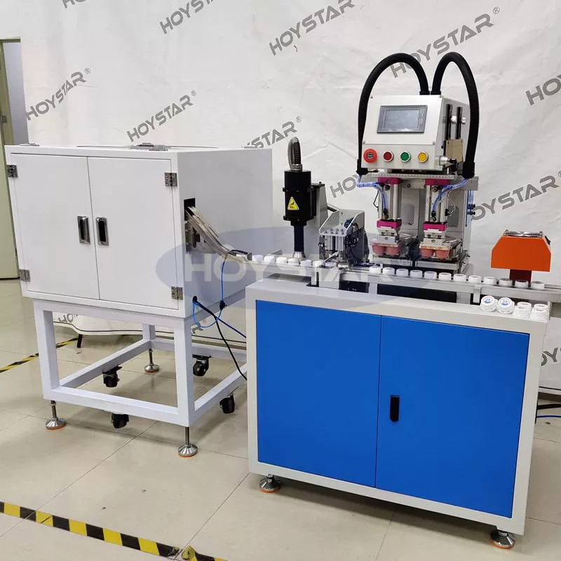 Printer Pad Caps Botol 2 Warna kanthi Perawatan Plasma sing dilengkapi feeder geter otomatis bisa nyadari loading otomatis tanpa operasi manual, ngirit tenaga kerja.