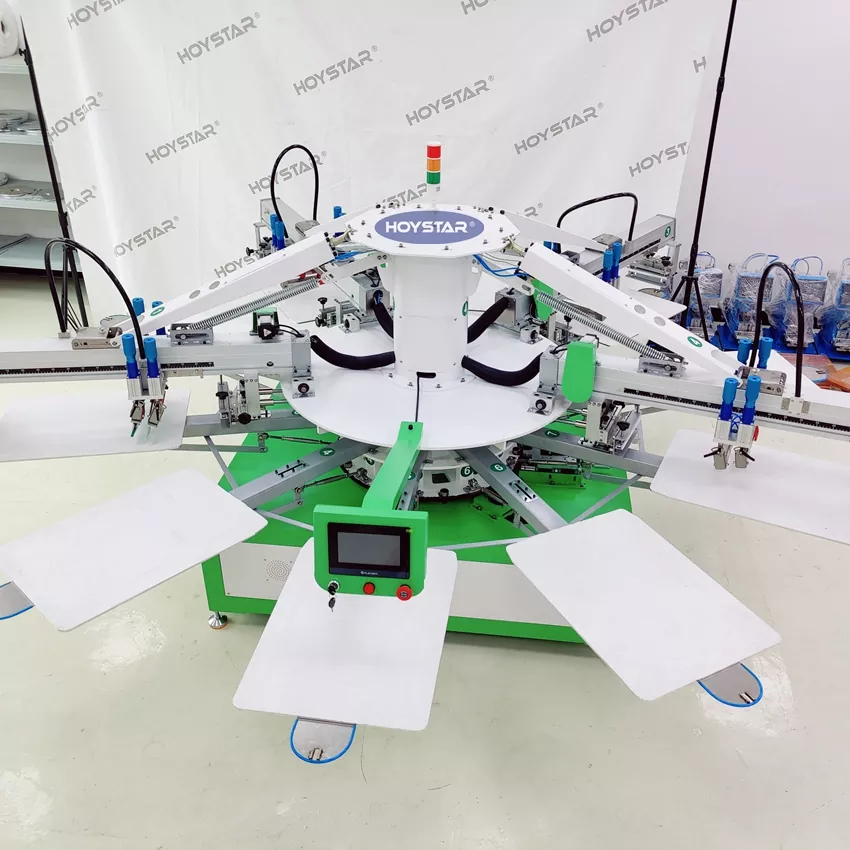 Iki HOYSTAR 4 Color T Shirt Textile Printing Screen Printing Machine dirancang khusus kanggo industri percetakan. Dilengkapi prosesor mikro sing cerdas, layar tutul, lan sistem sing didorong motor, njamin stabilitas cetak sing dhuwur lan toleransi registrasi warna ing ± 0.1mm, kanthi nyata ningkatake akurasi lan konsistensi cetak. Cocog kanggo macem-macem aplikasi percetakan kayata T-shirt, sandhangan, label, lan kain. Printer layar otomatis iki minangka solusi sing cocog kanggo produksi printing kanthi tliti lan efisien.