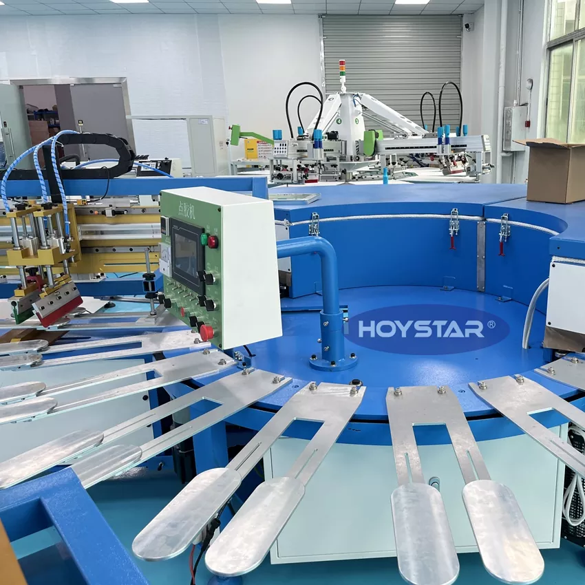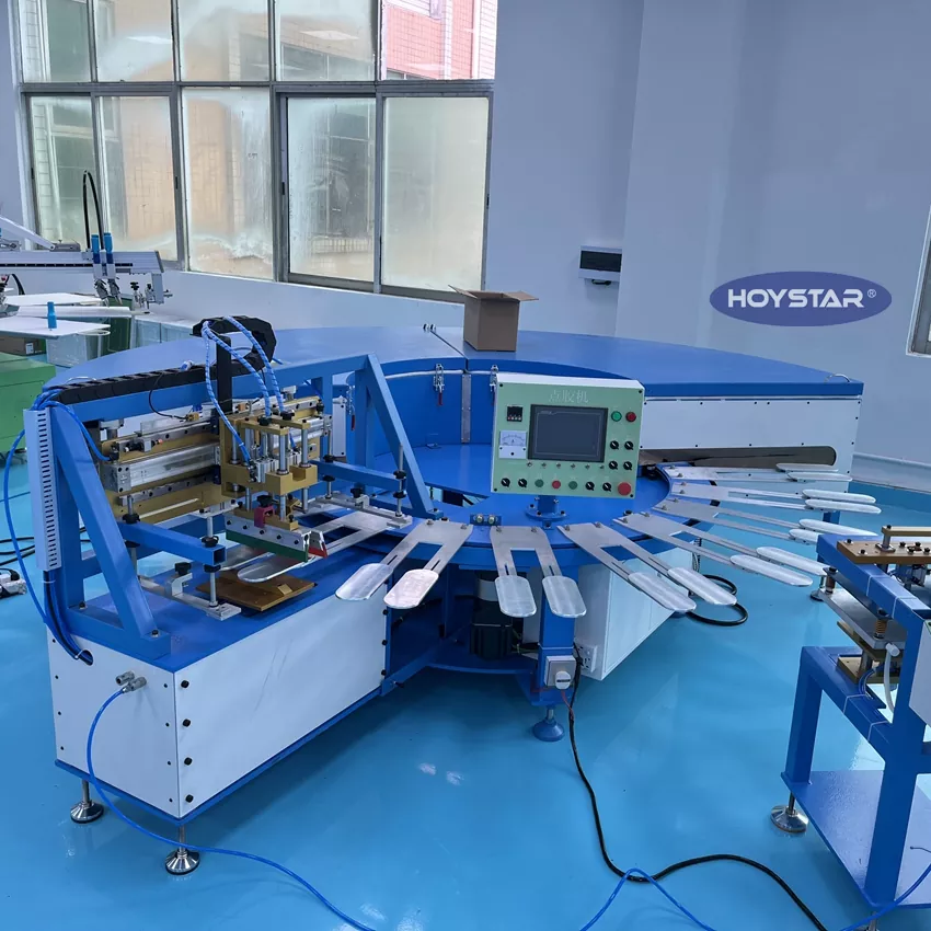 HOYSTAR minangka pabrikan lan pemasok sing dipercaya ing China; Iki HOYSTAR High Rapid Anti-slip Socks Screen Printing Machine dirancang kanggo aplikasi ing industri nyulam tekstil. Kanthi kacepetan nganti 800-1000pairs / Hr, cocok kanggo nyithak kaos kaki non-slip, kaos kaki bayi, kaos kaki diwasa, kaos kaki bal-balan, lan liya-liyane. PLC kontrol layar tutul, gampang banget kanggo operate. Mesin sing dilengkapi sistem pangatusan bisa garing silikon lan tinta kanthi apik.