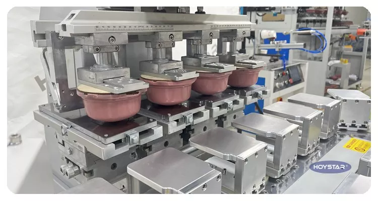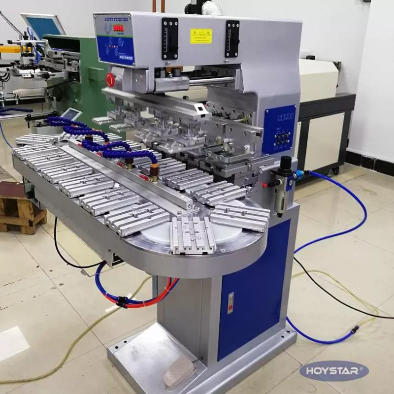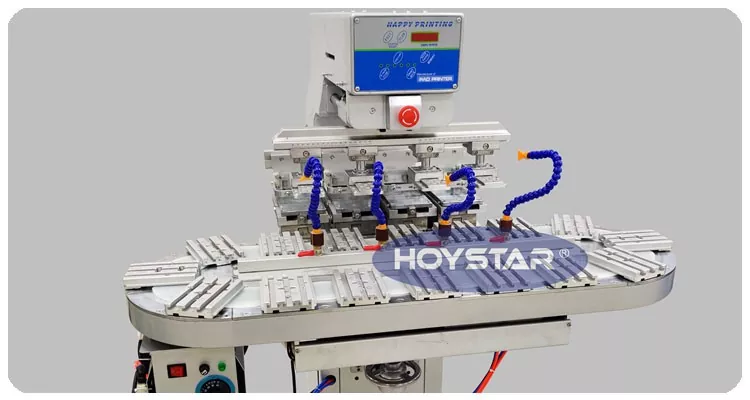 Minangka Produsèn profesional ing China, kita kaya kanggo nyedhiyani dhuwur-efficiency HOYSTAR Big Size Four Color Pad Printer Kanthi Conveyor. Mesin iki mbisakake printing pad warna papat terus kanggo produk, bisa nggawe registrasi warna rampung ing siklus siji. Mesin iki nganggo sistem conveying turntable rotary, sing ngidini transfer produk sing terus-terusan lan lancar sajrone proses percetakan, kemampuan kanggo ngrampungake overprinting 4 warna kanthi mung siji siklus rotary. Dibandhingake karo printer pad jinis anter jemput, kacepetan kasebut cepet banget.