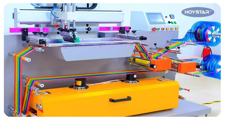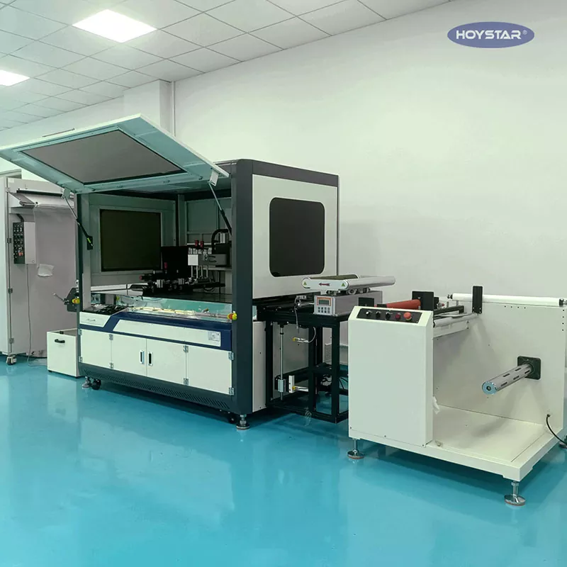 HOYSTAR iki nyedhiyakake Film Roll To Roll Screen Printing Machine. Mesin dilengkapi registrasi fotolistrik, kontrol layar demek PLC, setelan sing bisa disesuaikan, cocog kanggo nyetak ing macem-macem film, kaset, lsp.