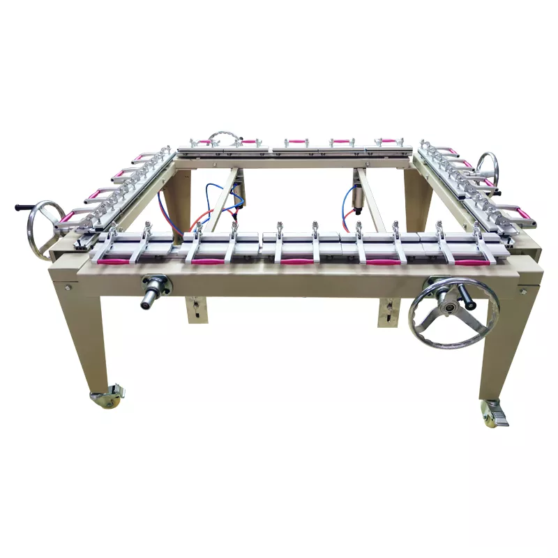 Mesin peregangan pigura layar digunakake kanggo nyeret layar kanthi rata lan kenceng ing pigura aluminium utawa kayu, njamin ketegangan layar sing konsisten - iki minangka faktor kunci kanggo nggayuh printing tinta sing rata sajrone proses pencetakan.