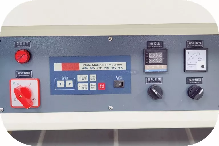 Mesin Eksposur Vakum UV Kanthi Pangatusan Kanggo Pencetakan Layar dilengkapi panel operasi, wektu cahya lan wektu pangatusan mesin bisa diatur kanthi bebas miturut kabutuhan.