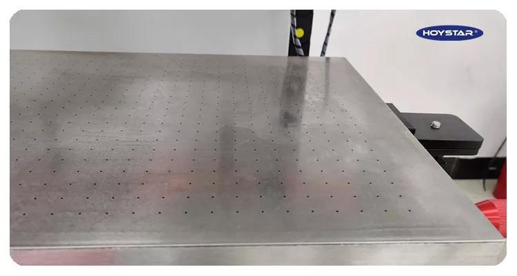 12. Dhuwur-kekuatan worktable karo roto-roto mbagekke bolongan nyedhot lan panyerepan vakum kuwat kanggo registrasi pas.